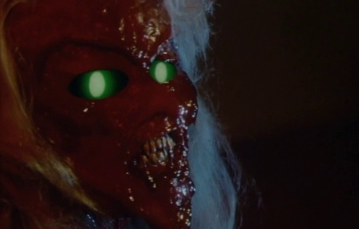 Yes, Naud and Nelson seem to take all the wrong bits too far on Necromancer. Going too far is great if it actually makes things more interesting, or provides excitement, we’re talking about cheap, 80s Horror after all. At first I thought there was a feminist angle at play – every male character is either disturbingly creepy and vice-driven, or oblivious and ignorant. It soon became clear, however, that no character really has any redeeming qualities. Perhaps Naud and Nelson are going with misanthropy in an attempt to make their Horror hit home. Really though, it seems they’ve just taken every negative or stereotypical character trait and exaggerated it to a comic book level. Cayton’s Julie is a perennial victim who must somehow break the accursed cycle she falls into. It’s honestly hard to watch. In her defence, though, who wouldn’t hire a demon lady to do a spot of revenge killing? Her boyfriend is too busy being cool or jealous to help, and the one guy that does want to help is a useless nerd. She has friends, sure, but I’m not even sure where they are for the majority of the movie. Instead it’s all about confrontations between her, creepy guys, and demons, and that’s about it for the plot. By the way, that sounds way cooler than it actually is.