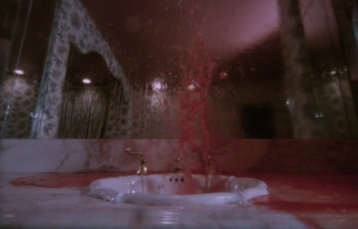 Necromancer isn’t all bad, though. At times the production value is quite decent, and there are some super cool sets – including Pepperdine University at Malibu, and one very nice party house, complete with a medieval-chic bathroom. I don’t know if that’s a real style, but see for yourself. On the flipside, the “necromancer” lady’s backyard-ritual garage fit-out is pretty lame. I’m not sure where the budget went either, as special effects are almost nonexistent. That said, there is a fairly large crew listed, so perhaps they actually got paid for their troubles, though I’ll be damned if I know what most of them did. The occasional moments where we do glimpse a demon are pretty bizarre, the costume is both hilarious and a tad creative, featuring some spooky, post-production eyes. Nelson understandably avoids giving the demon much screen time, not in a clever Hitchcockian way, more of a ‘please don’t look too closely’ kind of way. Relatively inexperienced cinematographers, Eric Cayla and Richard Clabaugh, seemed to have combined to do a pretty solid job though, and everything is carried by Carole A Kenneally’s editing. For the most part it’s simple and keeps things flowing, but there is one standout sequence where Elizabeth Cayton fights herself. It’s actually pretty awesome.