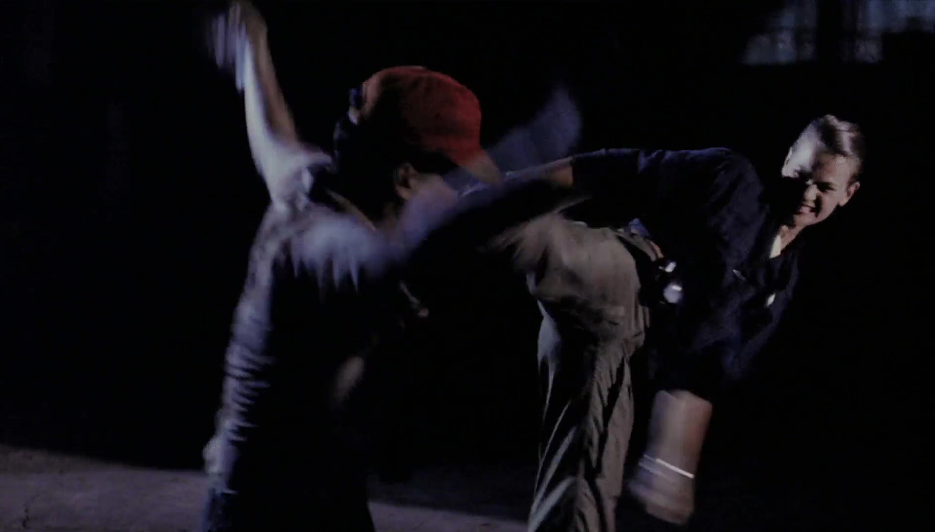 If you’ve had the pleasure of watching the insane “Rowdy” Roddy Piper vehicle Hell Comes to Frogtown, you’ll recognise the distinctive Verrell. Here she’s the decorated police officer Jenny “Silk” Sleighton, nicknamed so “’cause I’m so fucking smooth.” She lays the sultry voice on thick throughout, contrasting delightfully with all the arse kicking she does, almost Grace Jones style. Weirdly enough, the character is credited to a mysterious Claudine St. James, as if Silk exists outside of the production, though I’ll be damned if I can find any evidence. The story was written by Frederick Bailey, who also acts in the film as one of Silk’s police buddies, with Santiago helping out. Whether overly ambitious or a bit misguided, it comes across more as a collage of varied murders than a story, but if you pay serious attention and re-watch scenes, it’ll start to make sense. There’s a lot of dodgy dealings going on, involving the smuggling operation of one Lord Austin – Peter Shilton, no not the soccer player, the apparently debutant actor, despite appearing rather old and accomplished. His rich, British villain accent is a treat, though he is criminally underused, and sadly written into a corner.