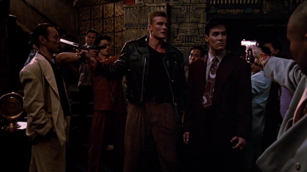 Apparently, director Lester came up with the idea and went through several action writers and re-writes to get to this point. That is before Warner Bros cut more than 10% of the film and probably half of the drama and character development. It does, however, explain the police backdrop and why it’s more or less ignored for the entire movie. The little background provided really only serves as a whiff of a reason to get Dolph’s Japanese-raised Sergeant Chris Kenner alongside Lee’s part-Japanese Johnny Murata, and pit them against some Yakuza. That said, the creative trust does borrow heavily from the narrative and style of buddy cop flicks like Tango and Cash and Lethal Weapon.